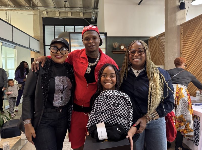 Bino created one of the day’s most defining moments. He stepped out and personally distributed Nike’s, Jordans, Vans, signature socks, and backpacks to youth in attendance, staying present and engaged throughout the process.